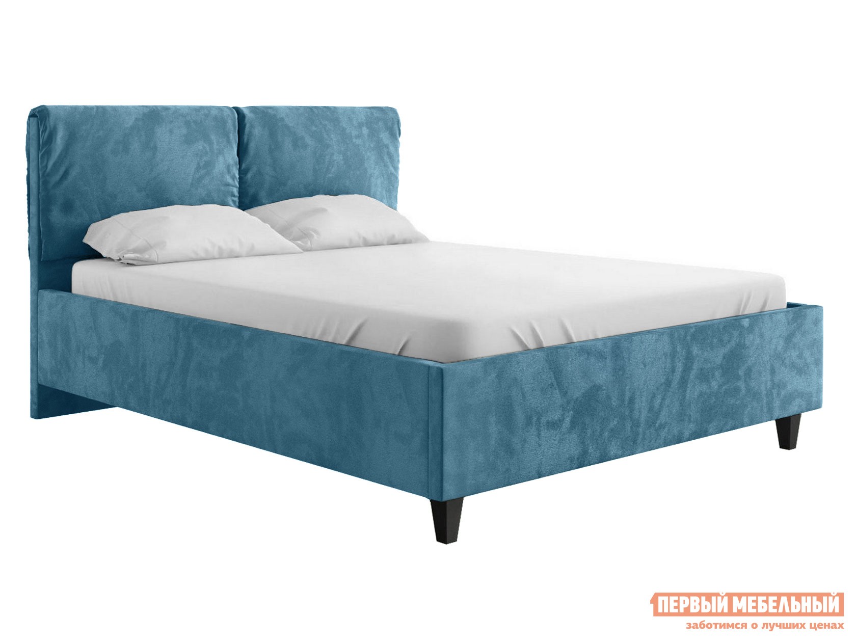 Двуспальная кровать Лаура ПМ Синий, шенилл, 160х200 см