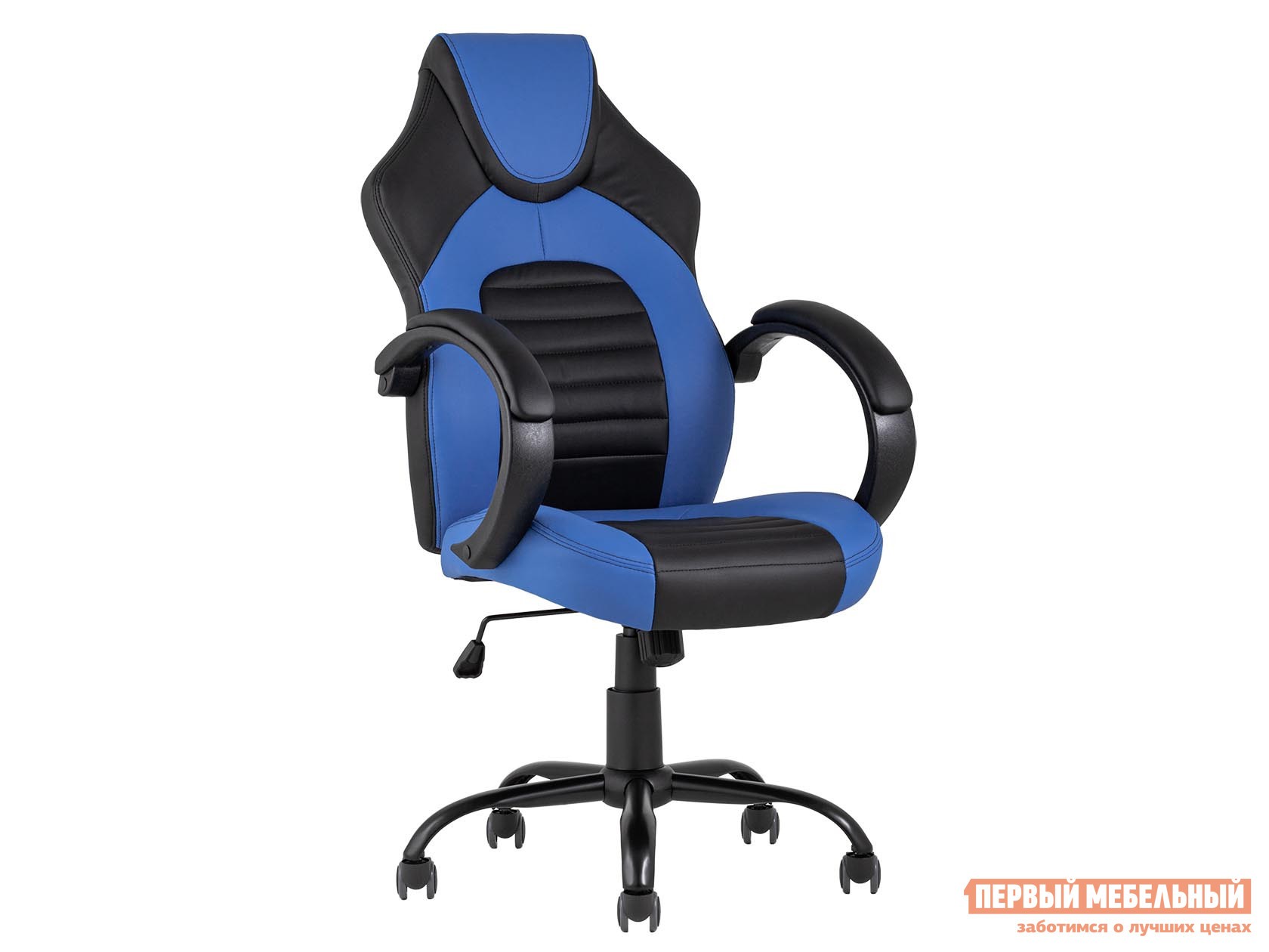 Игровое кресло TopChairs Racer Midi Черный, экокожа / Синий, экокожа