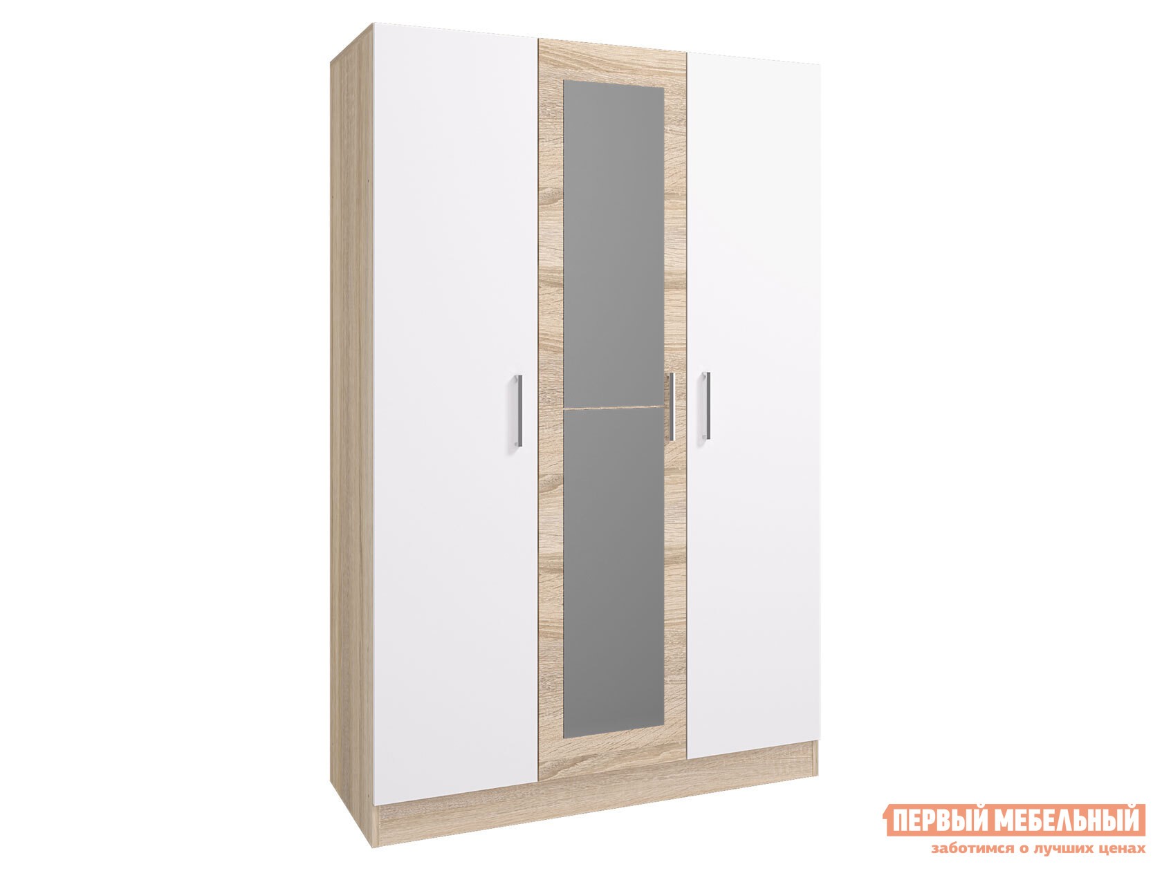 Распашной шкаф Леси Дуб Сонома / Белый, С зеркалом