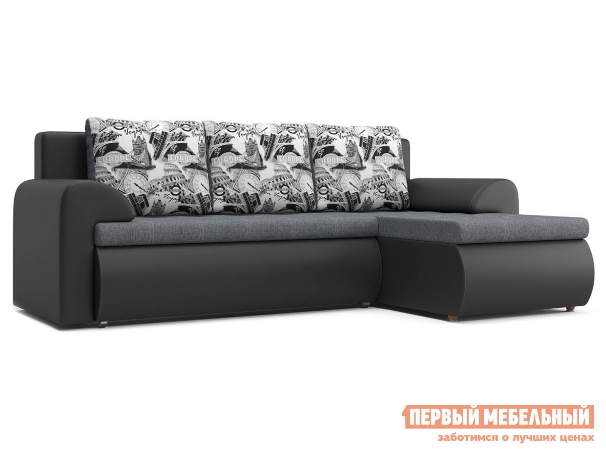 Угловой диван Цезарь Серо-черный, рогожка / иск. кожа, Правая