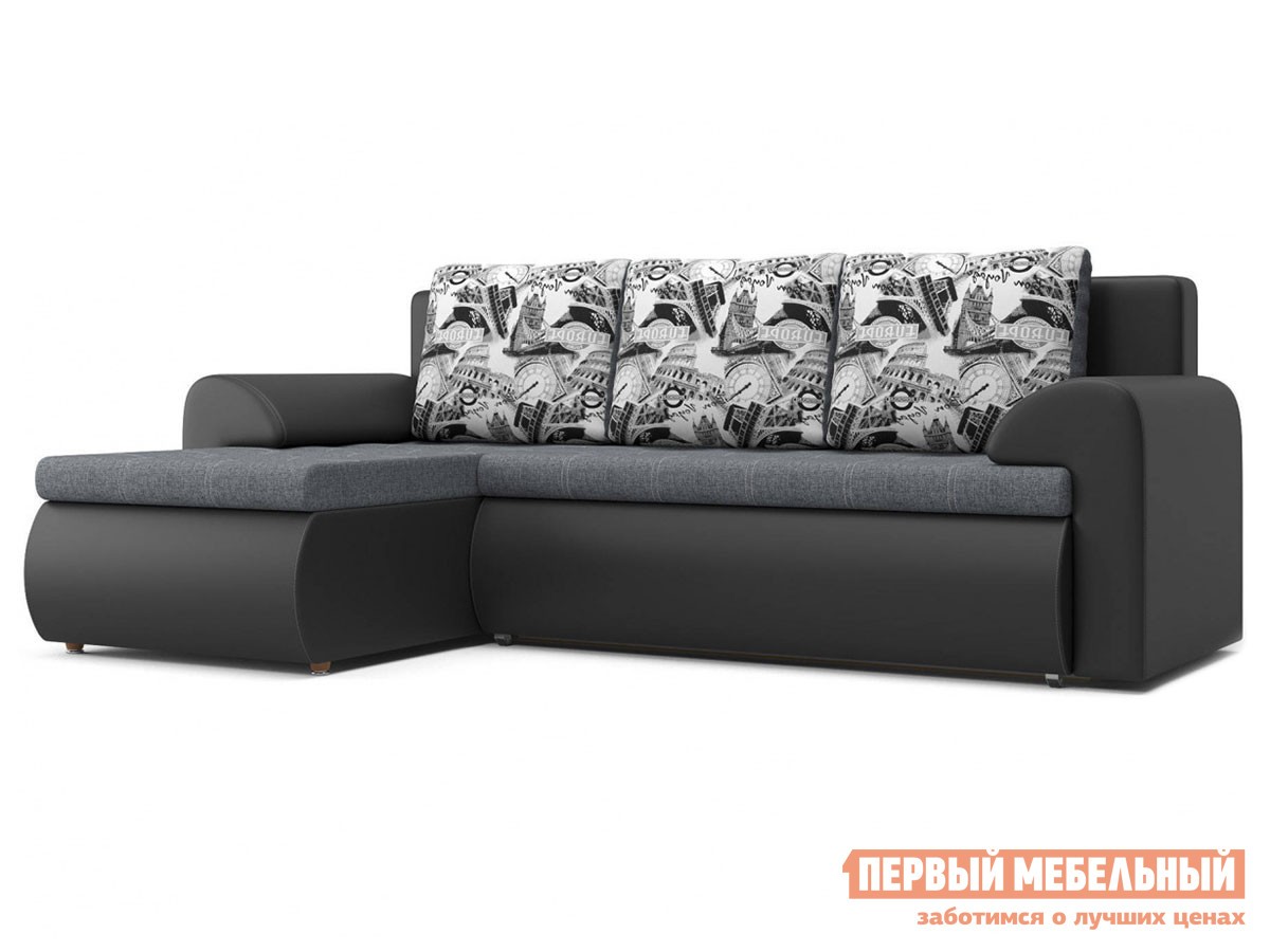 Угловой диван Цезарь Серо-черный, рогожка / иск. кожа, Левая