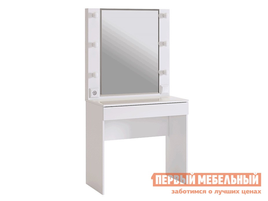 Габаритные размеры ВхШхГ 1550x800x500 мм. Туалетный столик Гламур — идеальное решение для оформления комнаты юной леди. Большое зеркало, яркая подсветка и вместительный ящик для аксессуаров — то, что нужно каждой девочке-подростку. Конструкцией предусмотрена розетка для подключения фена и другой техники. В комплект входят патроны для ламп, выключатель и провод с вилкой (3 метра).