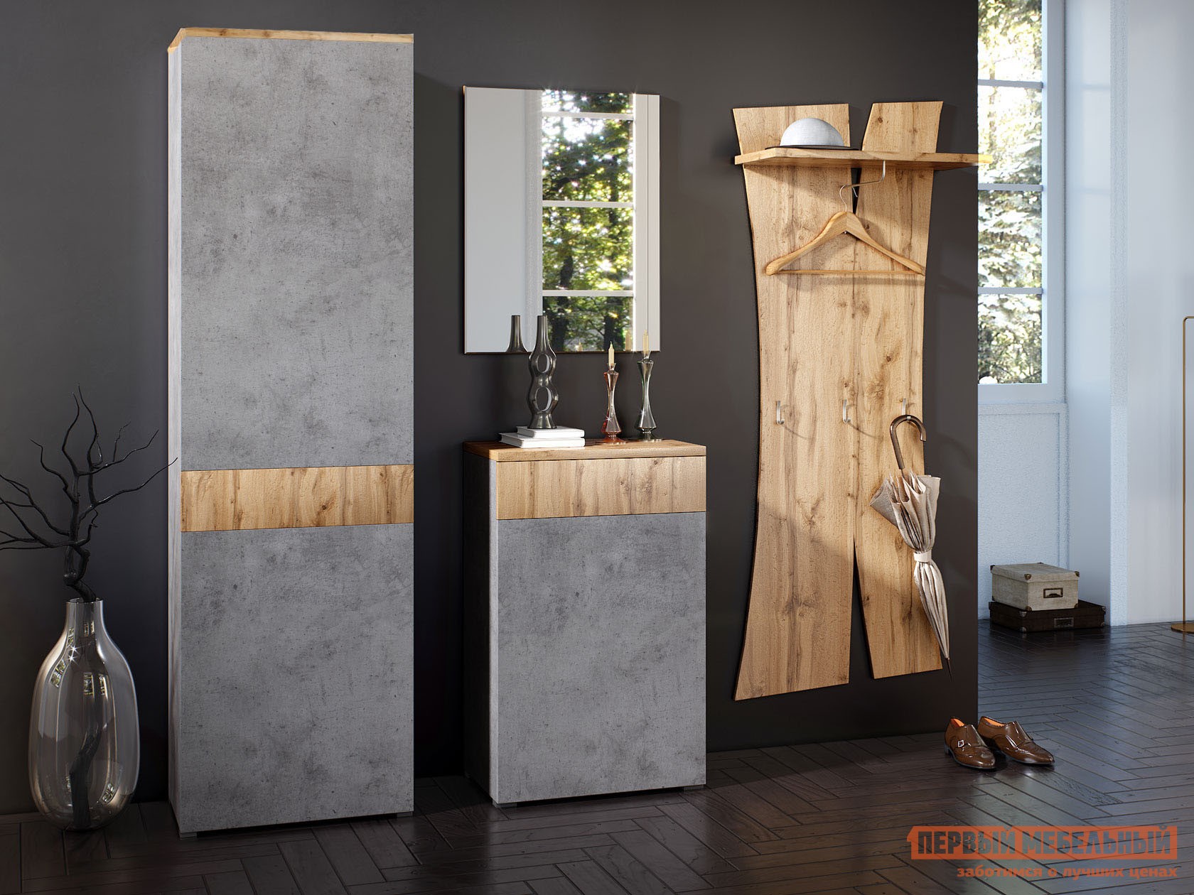 Прихожая Сахара Дуб Ватан / Бетон Чикаго, С топом-накладкой