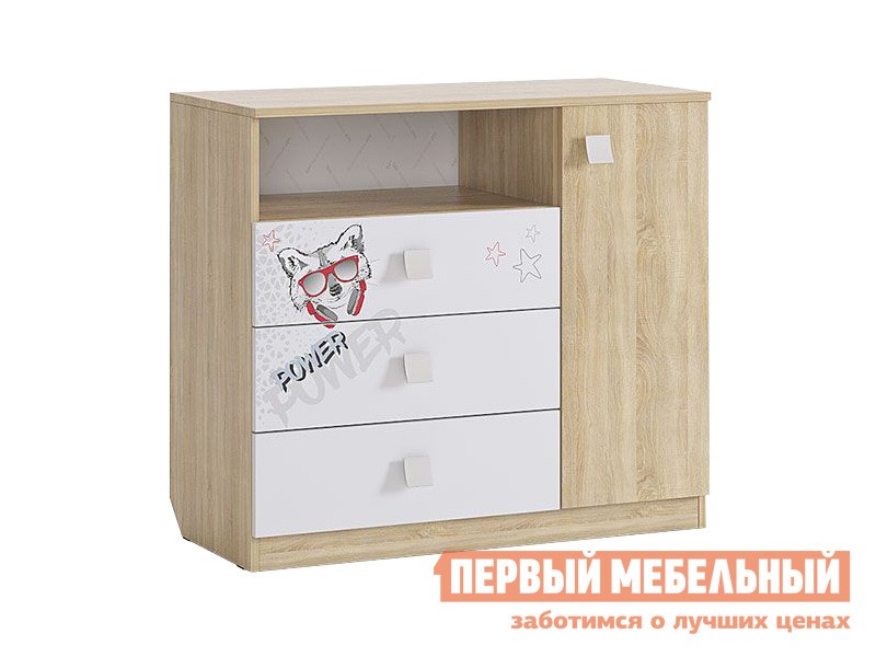 Габаритные размеры ВхШхГ 810x900x420 мм. Детский комод Энерджи станет отличным помощником для хранения вещей, игровой приставки и телевизора в детской комнате. Открытая и закрытые полки, а также ящики разместят все необходимое. Модель имеет практичный вырез под плинтус.