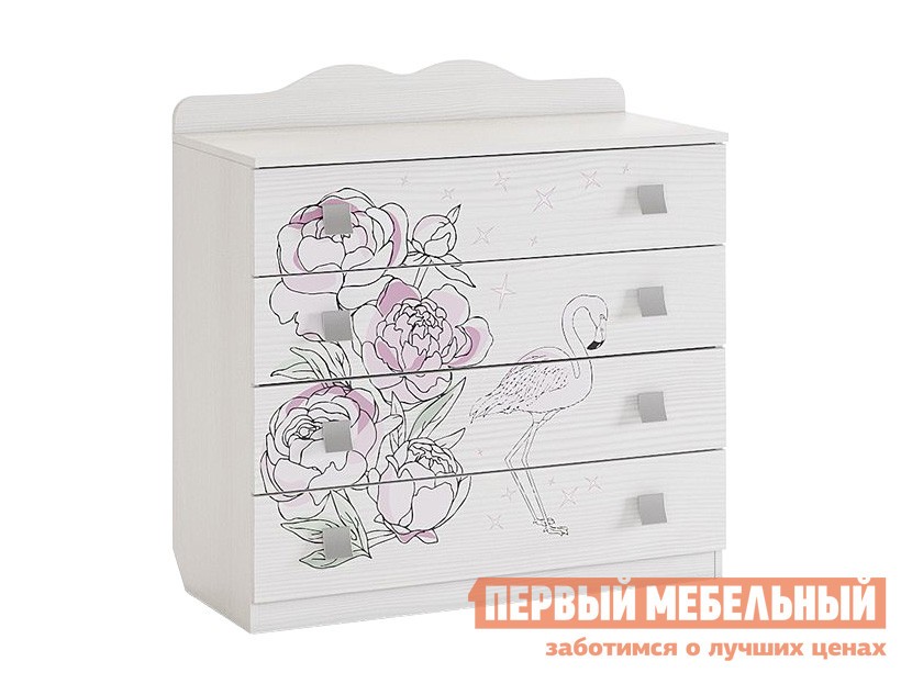 Комод выполнен из ЛДСП 16 мм, края обработаны кромкой ПВХ 0,4 мм. Рисунок на фасадах устойчив к истиранию и ультрафиолету.