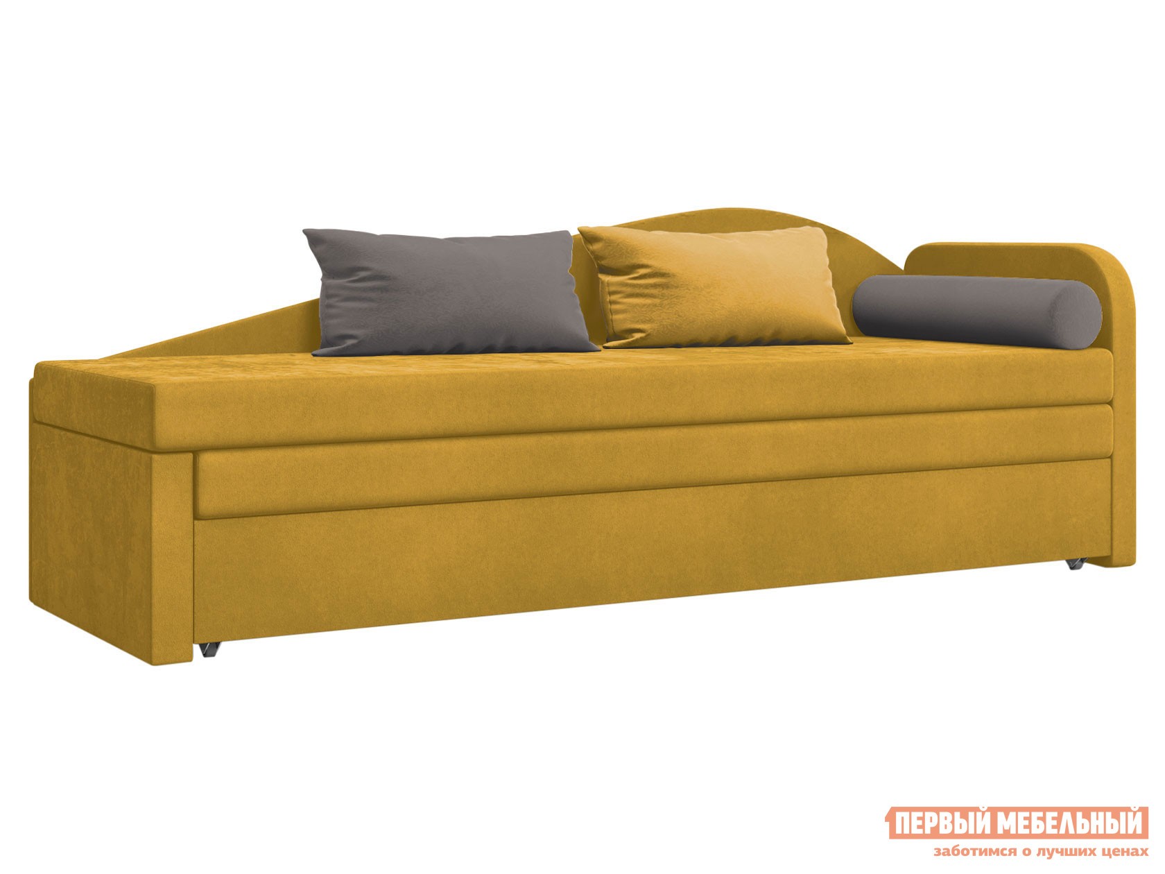 Прямой диван Верди Горчичный, велюр, Правая