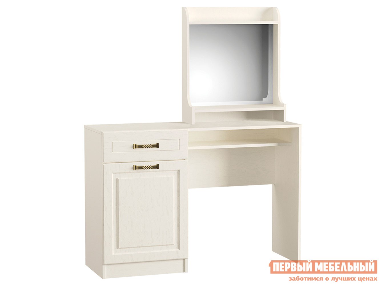 Туалетный столик Ливерпуль Ясень Ваниль / Белый, С зеркалом