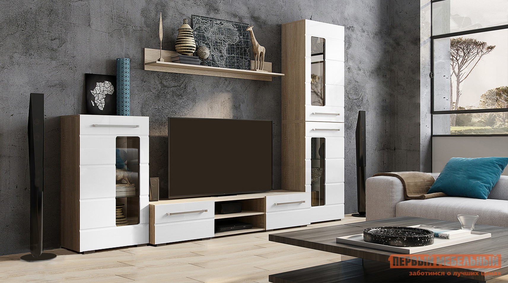 Гостиная Милан Дуб Сонома / Белый глянец